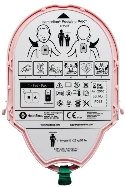 Les électrodes pédiatriques permettent au défibrillateur Samaritan PAD d’adapter automatiquement l’énergie du choc administré.