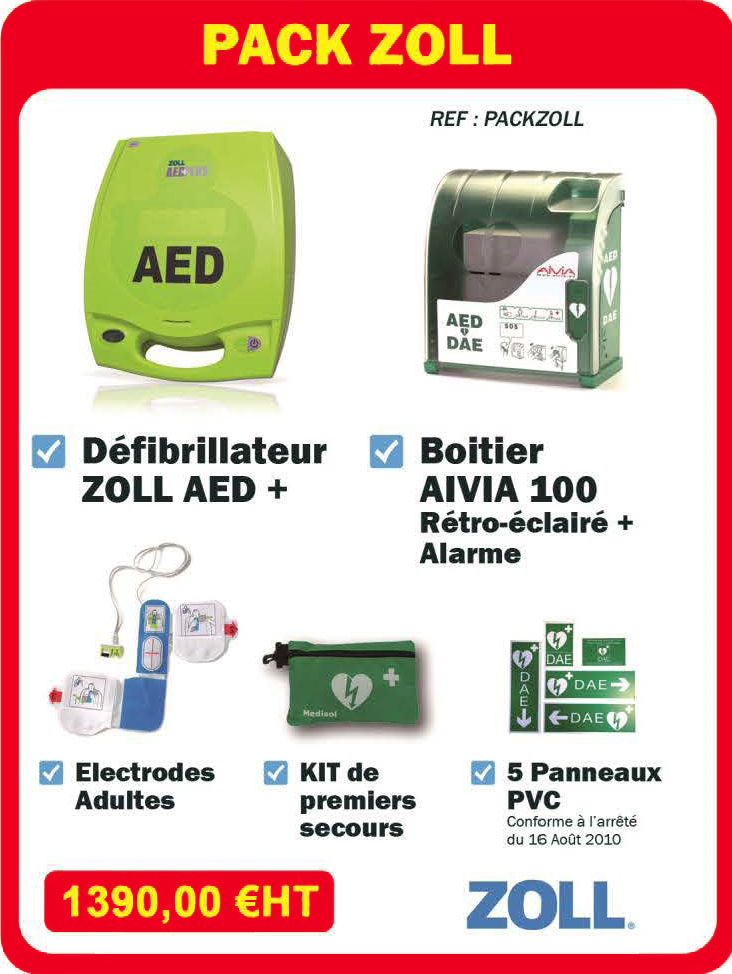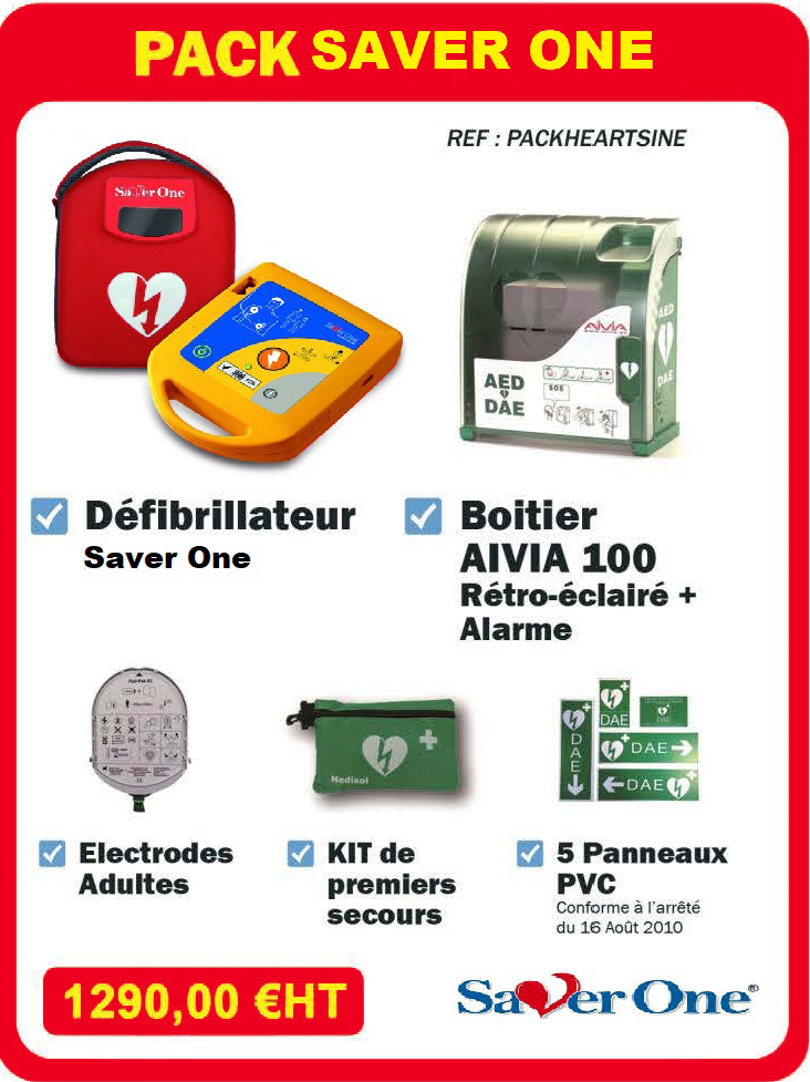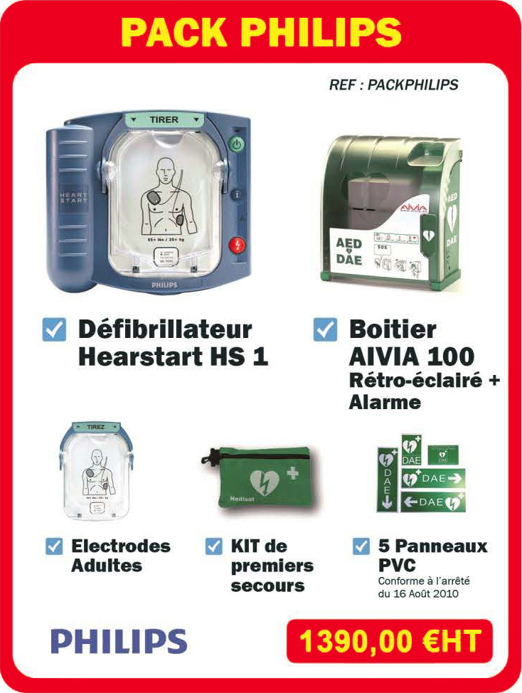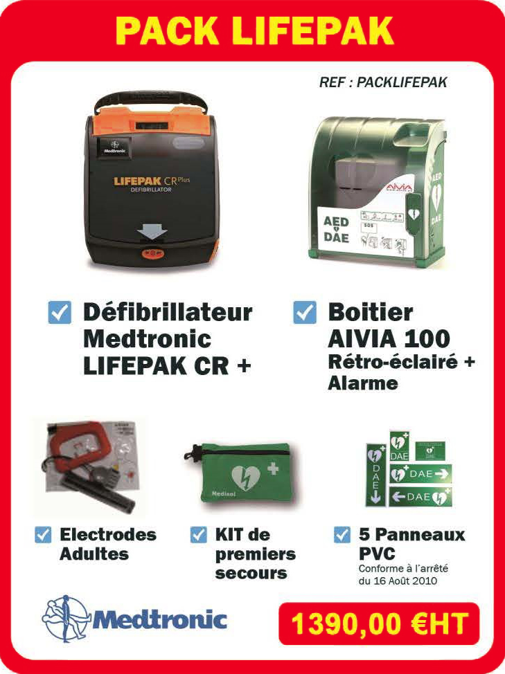 Les packs Défibrillateurs Automatisé Externe sont fournis avec :